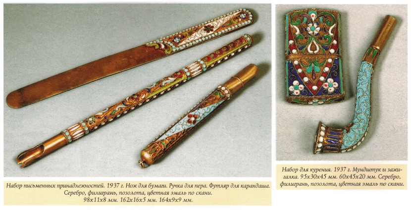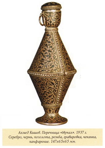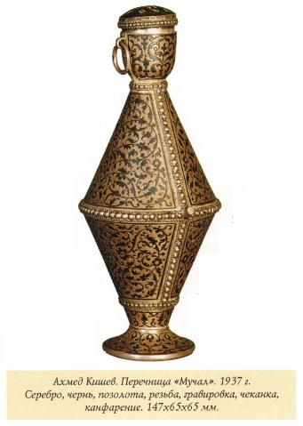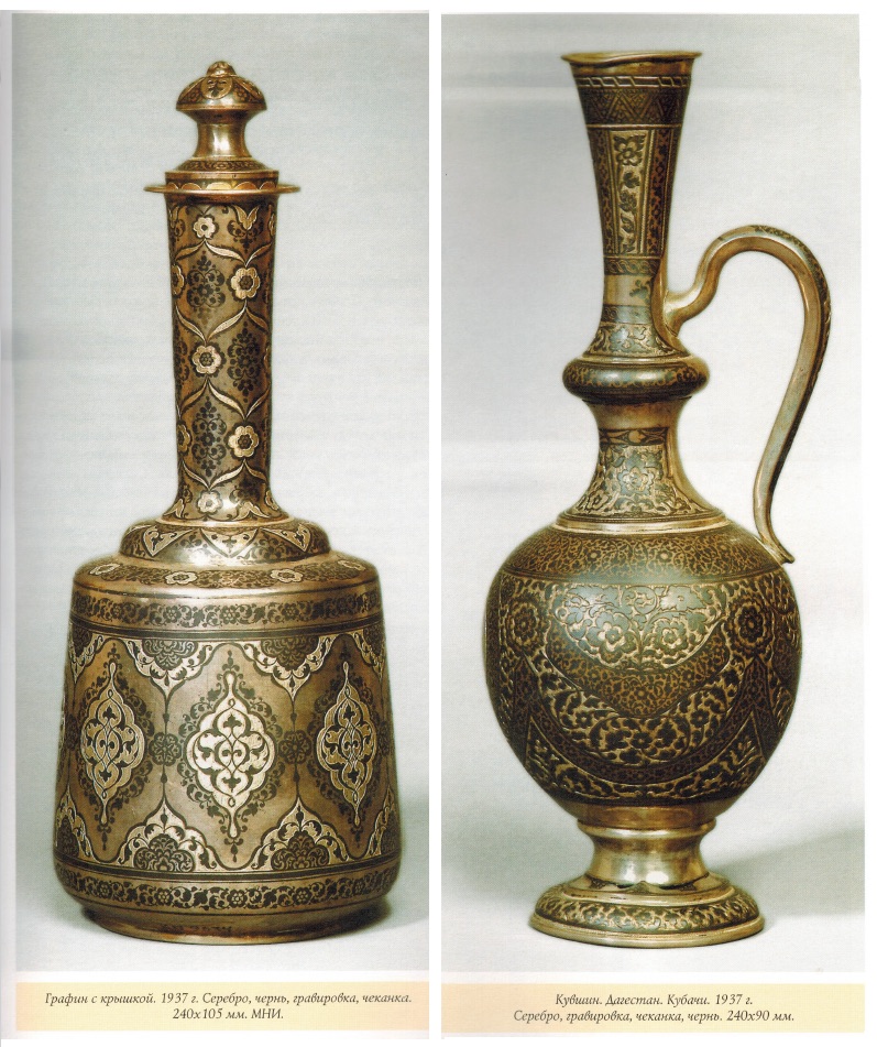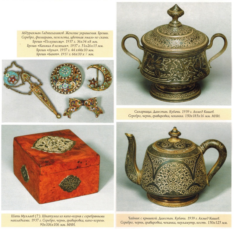 Выставочные работы 1937 года стали эталоном высочайшего мастерства. Кубачинские ювелиры блестяще виртуозно владели сложнейшими техниками: