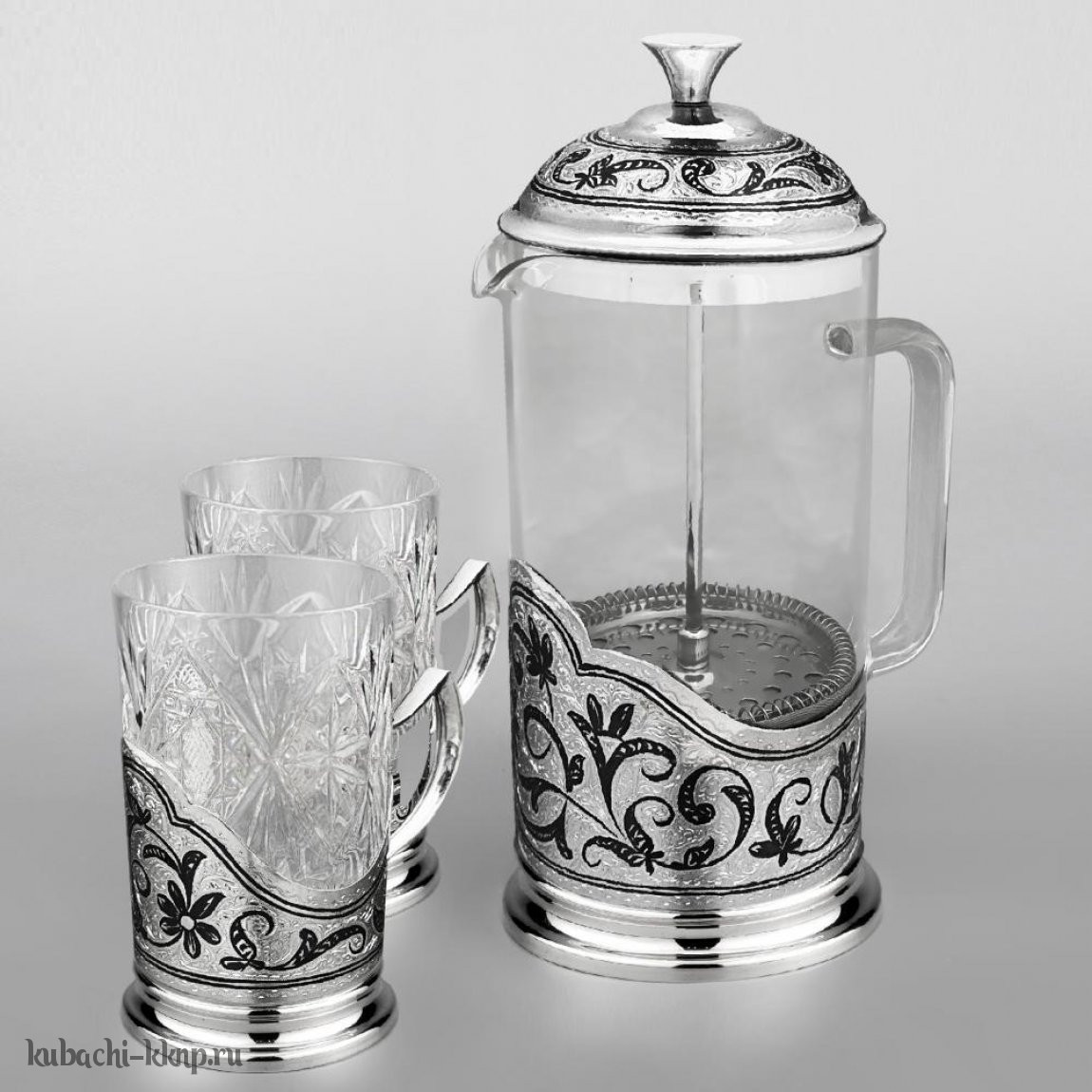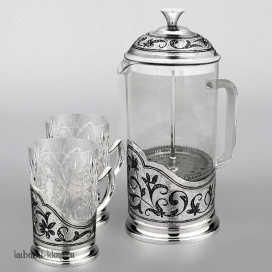 | Параметры: | Высота: 24 см чайник и 11,5 см подстаканник, Объем: 1100 мл и 230 мл, Вставка: стекло, |