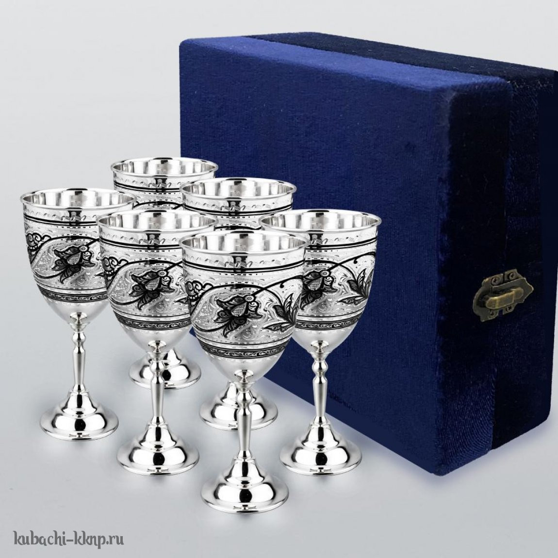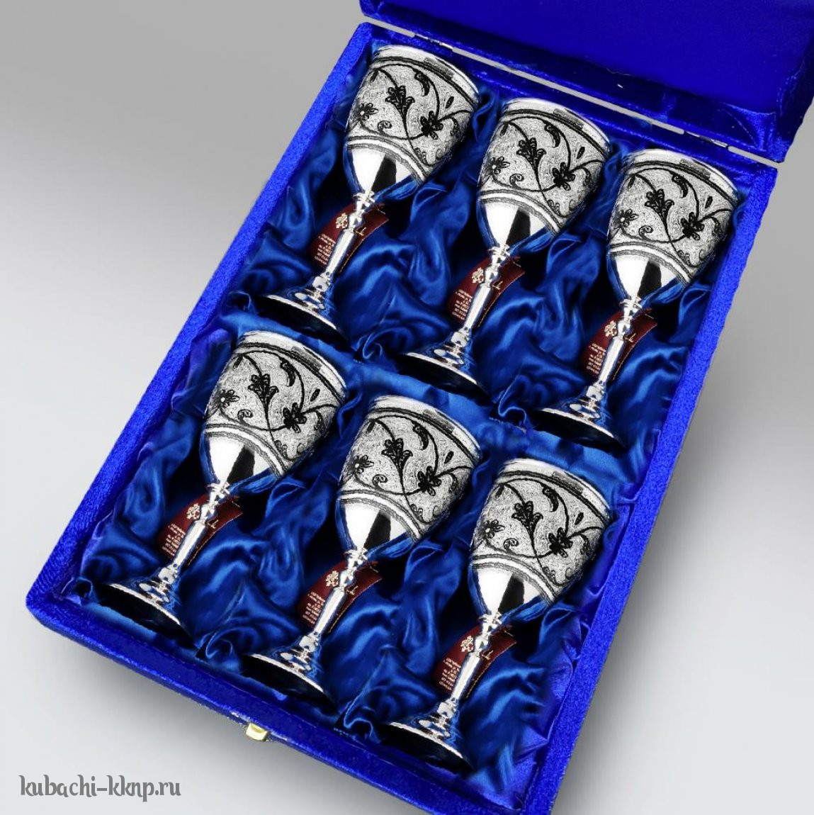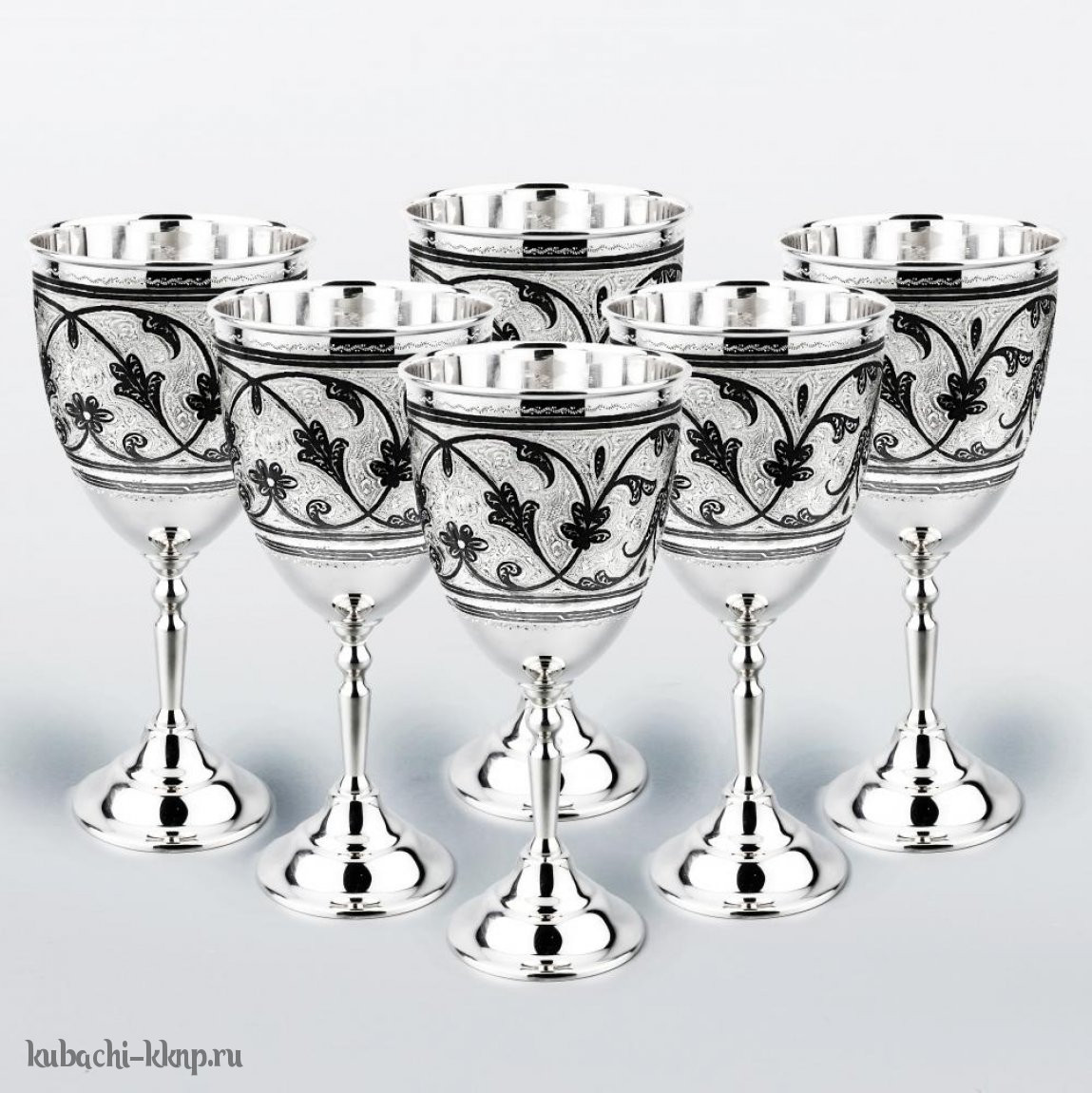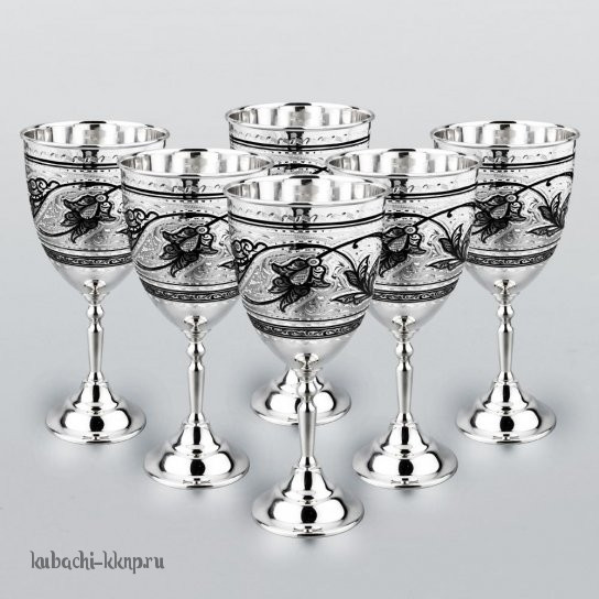 Набор из шести серебряных фужеров с чернением, ф00033-6