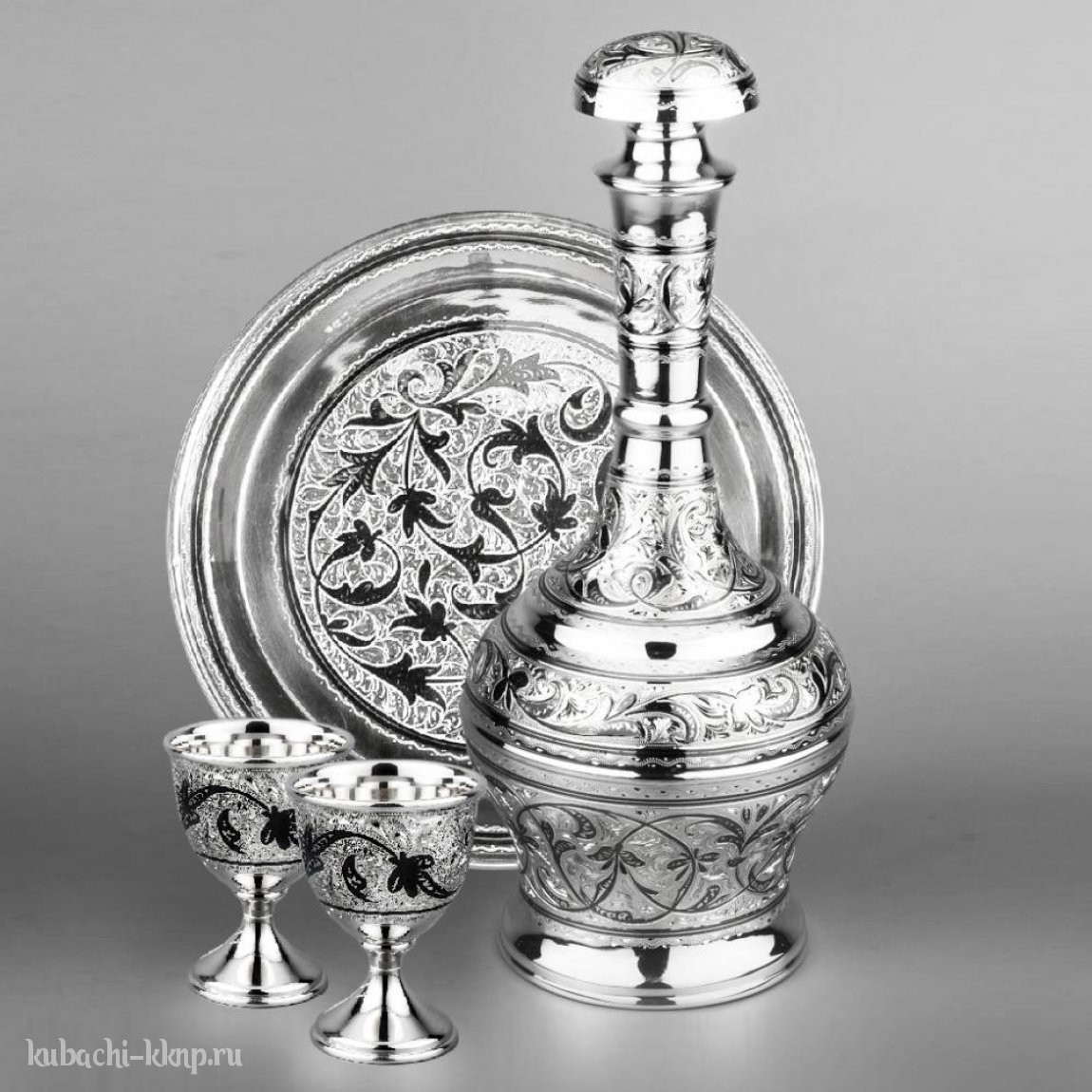 | Параметры: | Высота: 24 см графин и 6,3 см рюмка, Диаметр: 18.5 см поднос, Объем: 500 мл графин и 35 мл рюмки, |