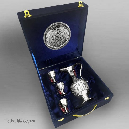 | Параметры: | Высота: 23,5 см графин и 6,3 см рюмки, Диаметр: 18 см поднос, Объем: 450 мл графин и 35 мл рюмки, |