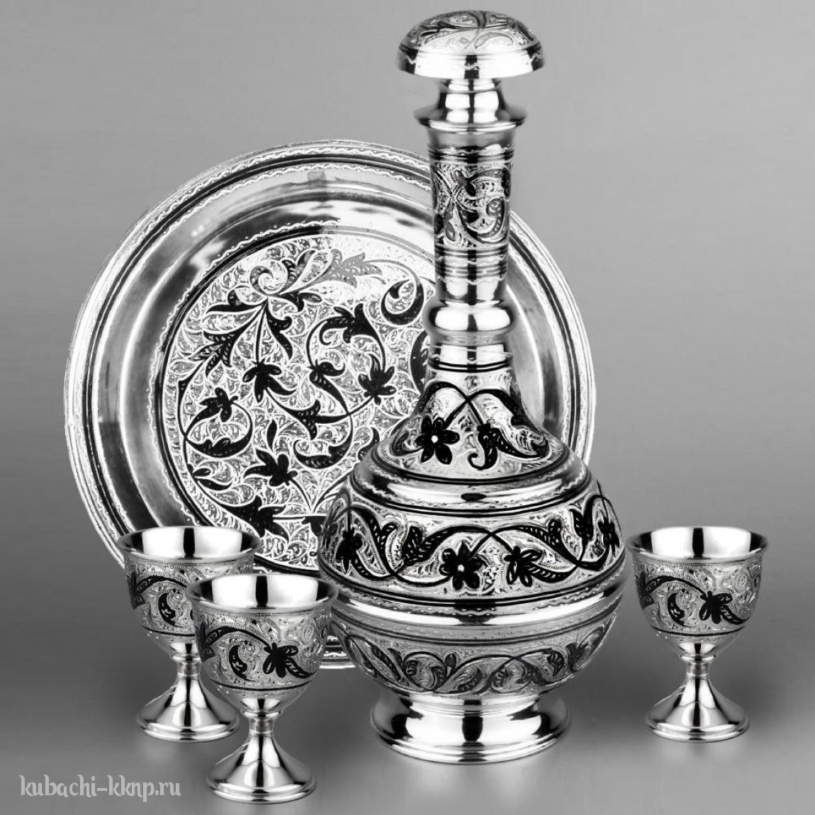 | Параметры: | Высота: 24 см графин и 6,3 см рюмки, Диаметр: 18,5 см поднос, Объем: 500 мл графин и 35 мл рюмки, |