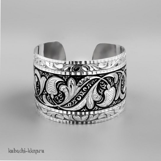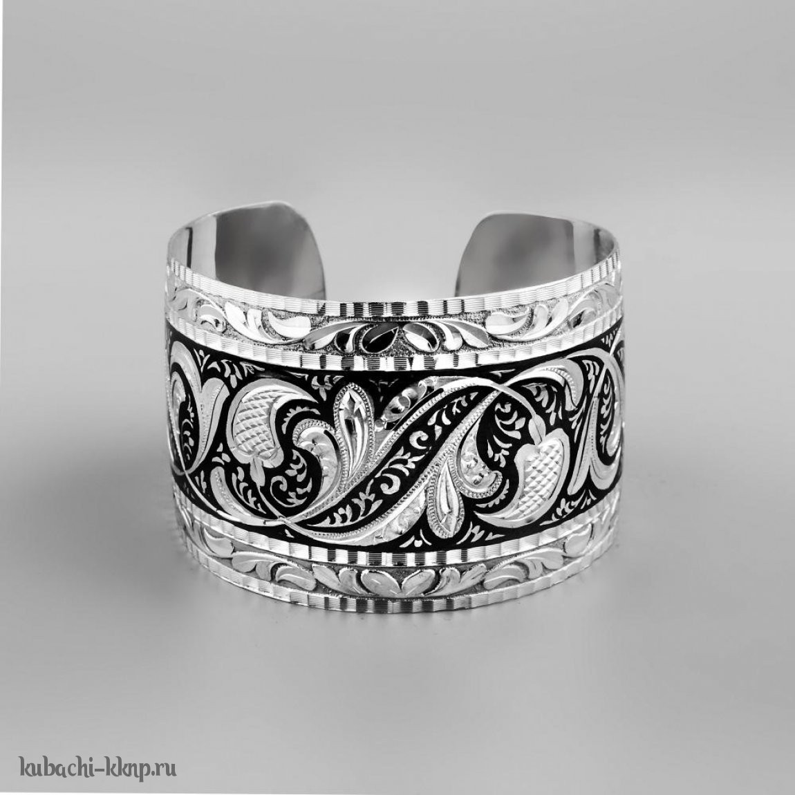 Серебряный широкий браслет Кубачи с гравировкой, БР34