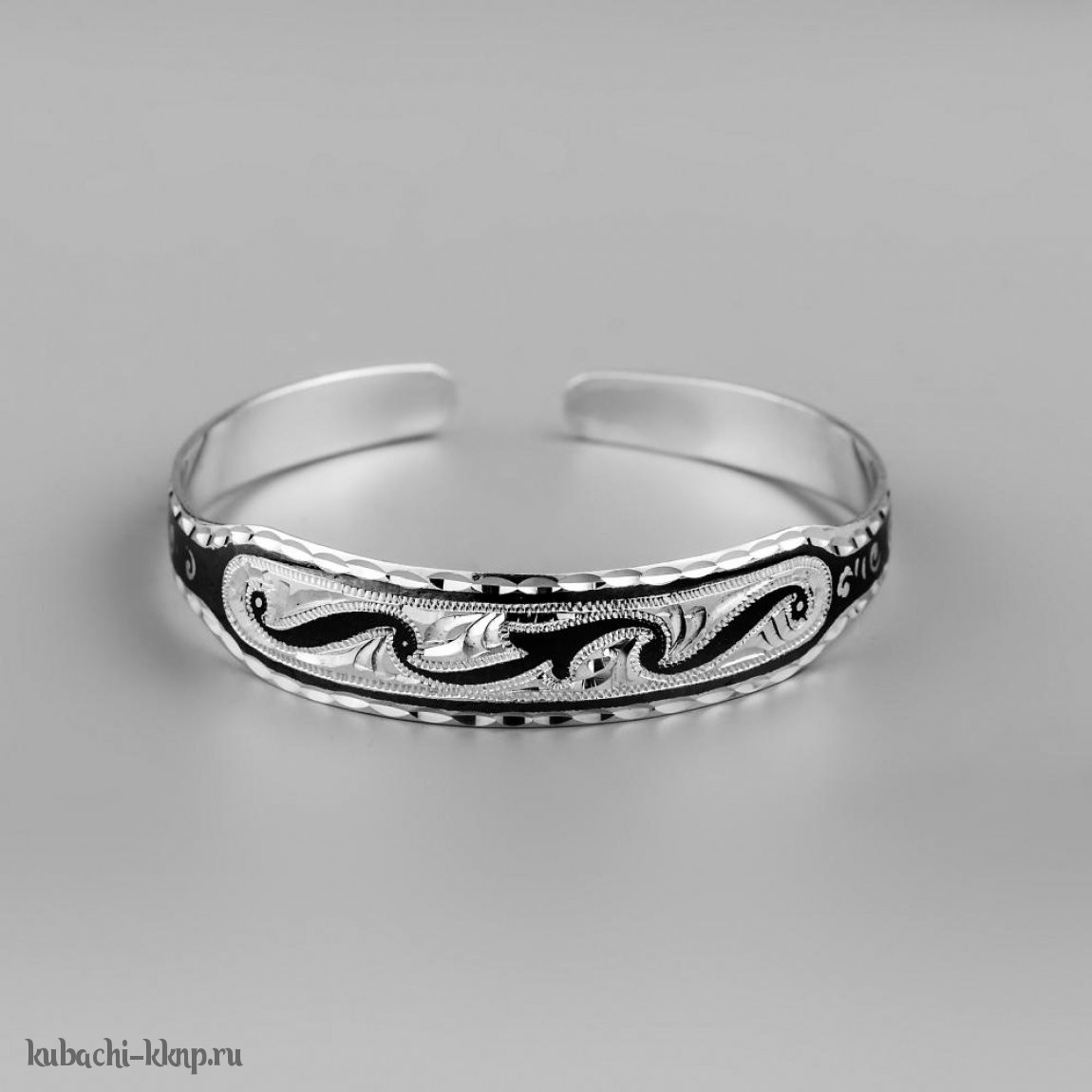 Кубачинский браслет из серебра с изящным орнаментом - БР77