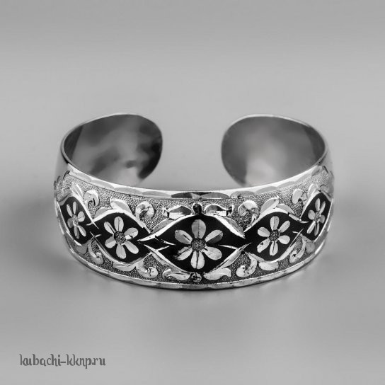 Серебряный браслет Кубачи с ромбиками и цветами, БР91