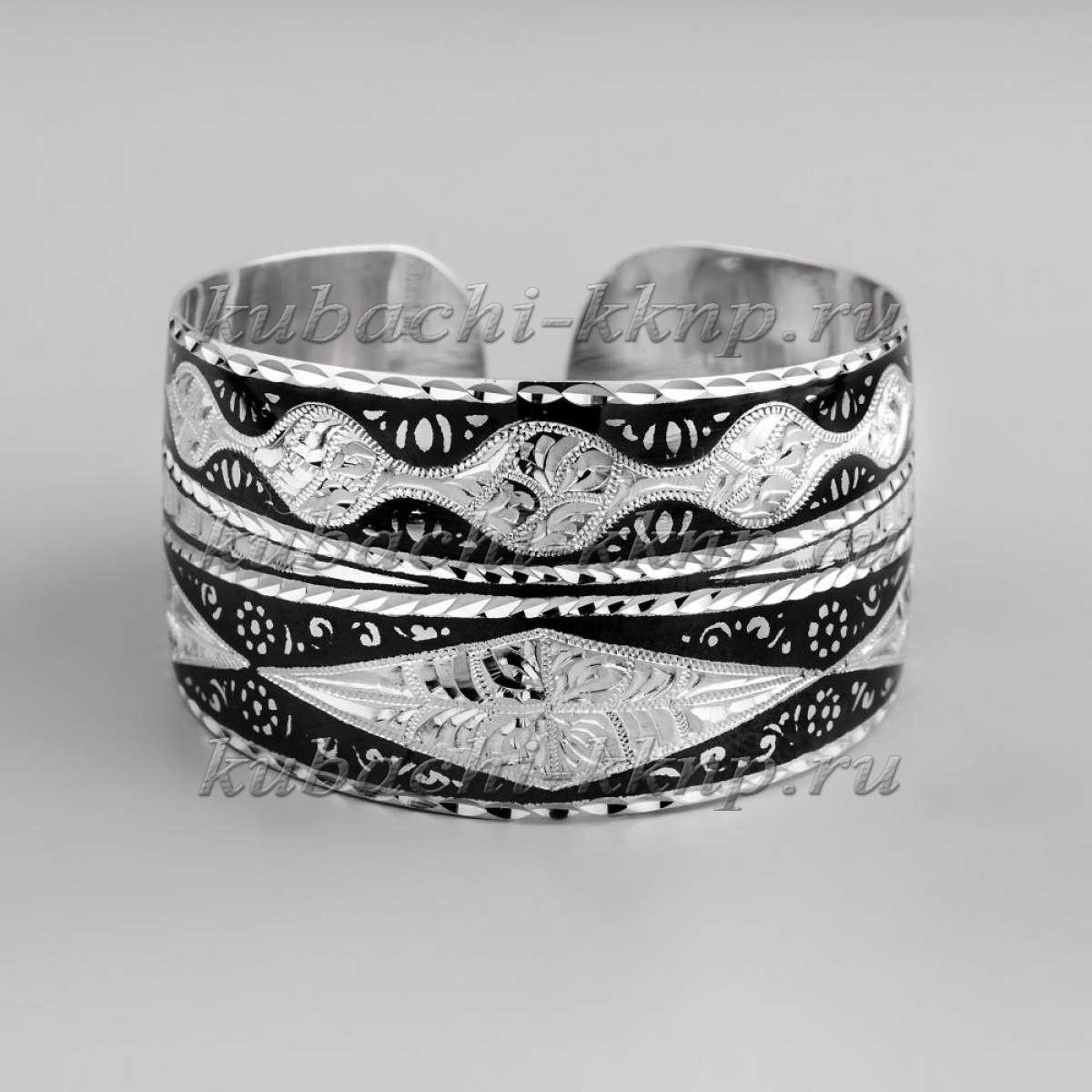 • Серебряный браслет Кубачи с  мелким черненым орнаментом - БР115