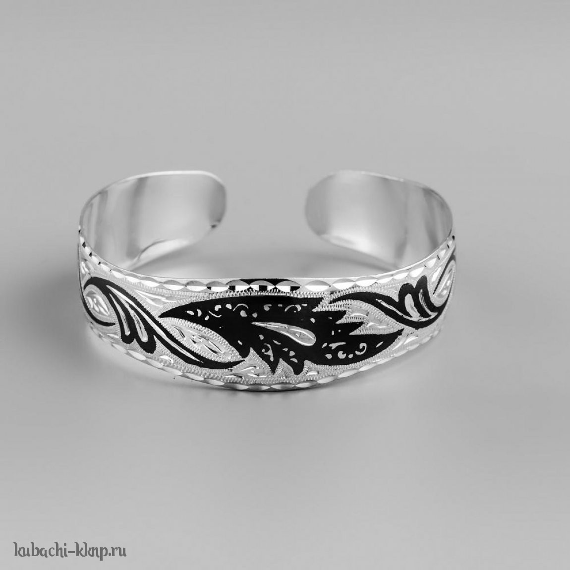 Серебряный браслет Кубачи с черненым цветком, БР151