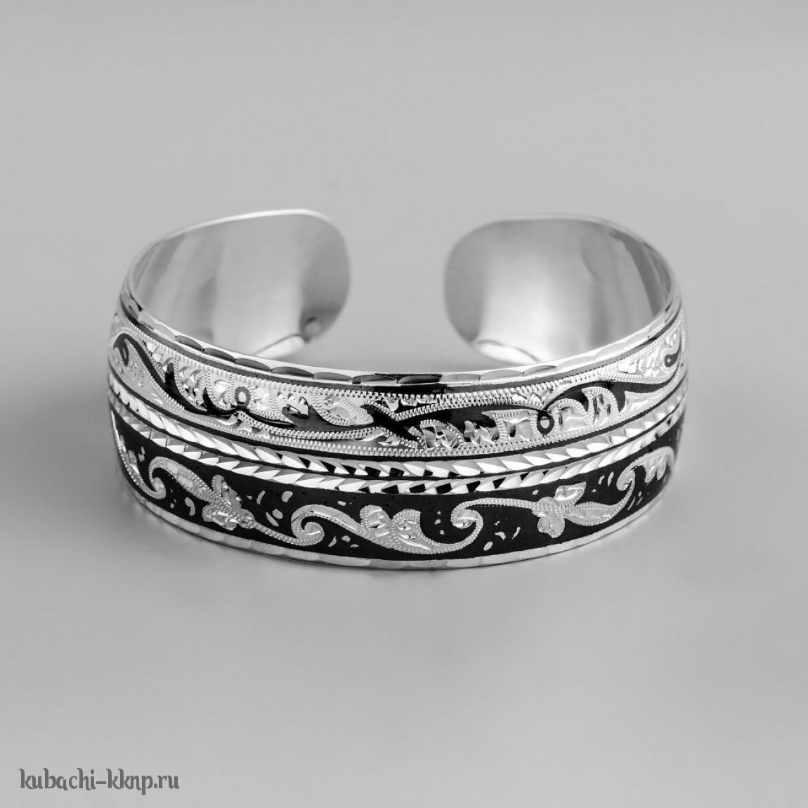 Широкий серебряный браслет Кубачи с чернением - БР216