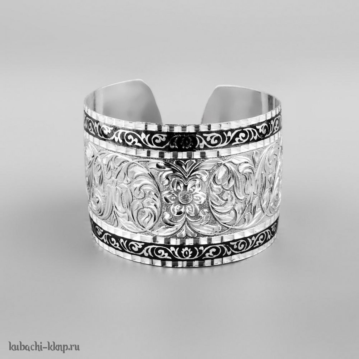 Серебряный браслет Кубачи с чернением по краям, БР36