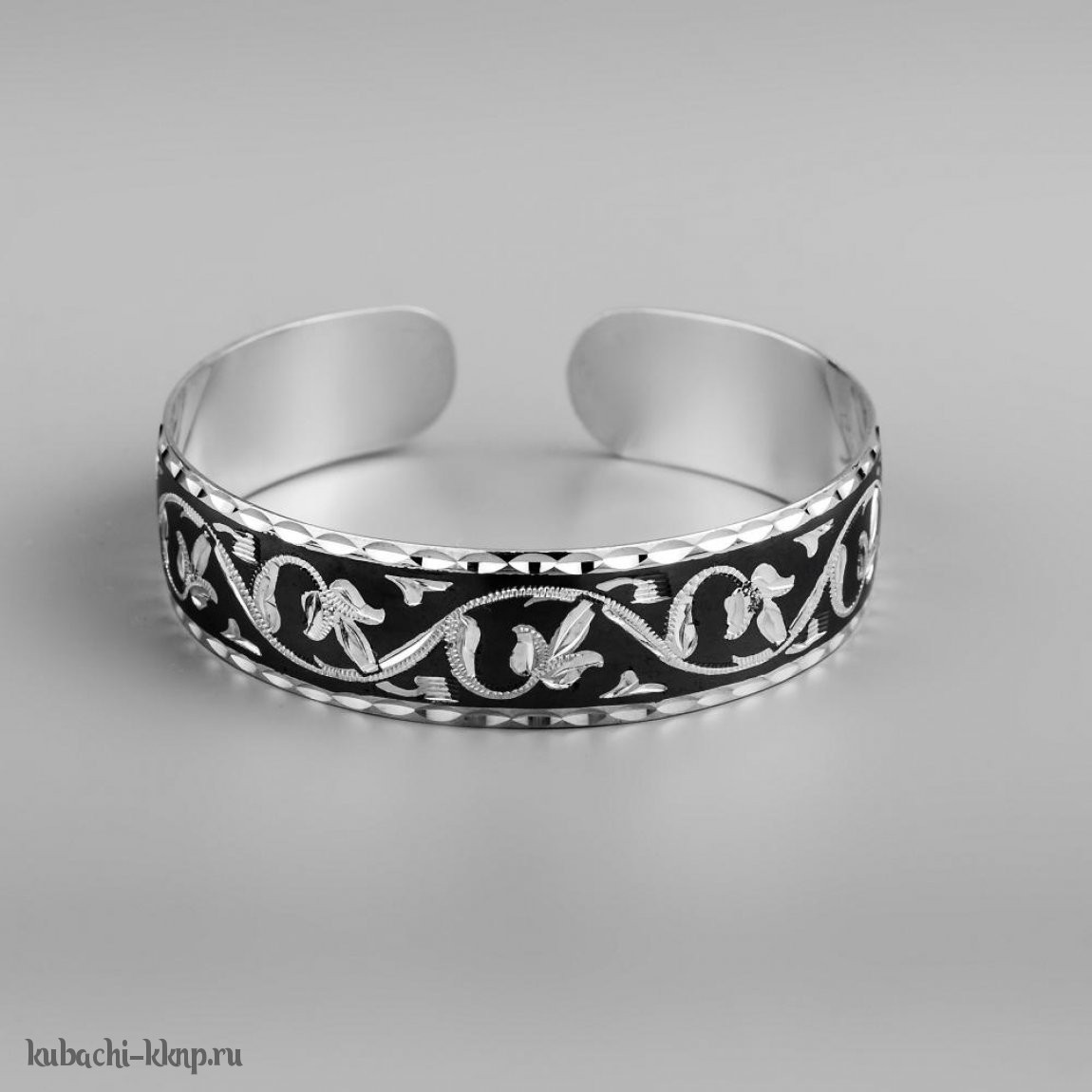 Серебряный браслет Кубачи с гравировкой и черненым орнаментом, БР139