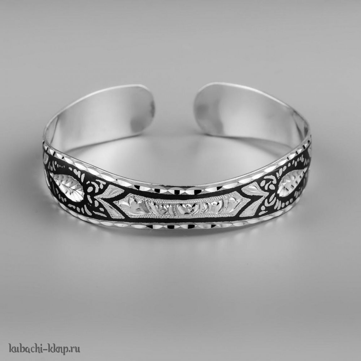 Кубачинский браслет из серебра с черненой полосой по центруо - бр188