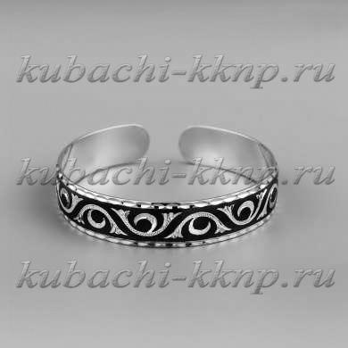 Узкий кубачинский серебряный браслет с чернением, БР129