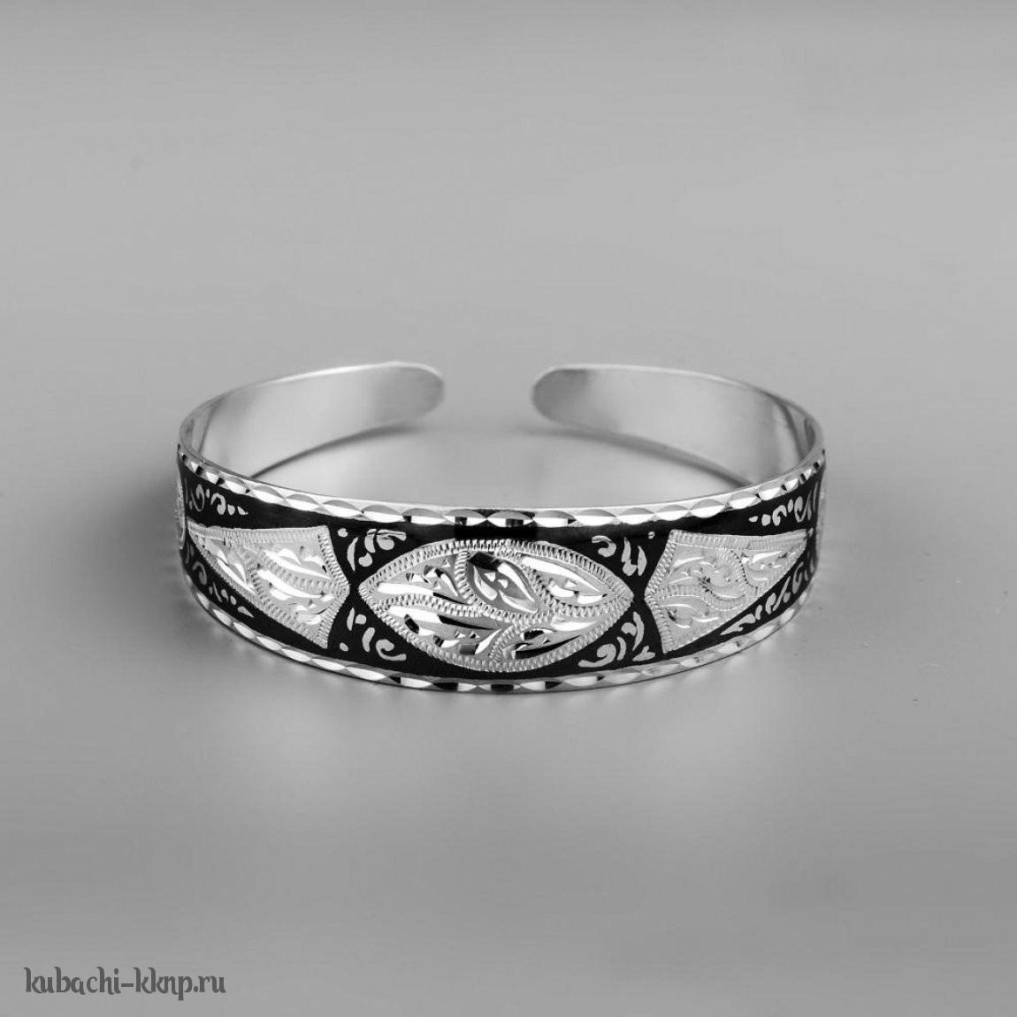 Серебряный широкий браслет с кубачинским орнаментом - БР61