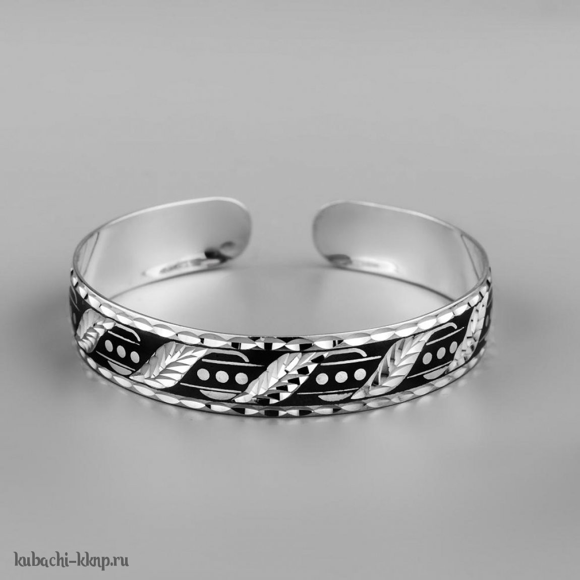 Широкий серебряный браслет Кубачи с чернением - БР216