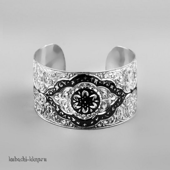Жесткий серебряный браслет с кубачинским орнаментом, БР38