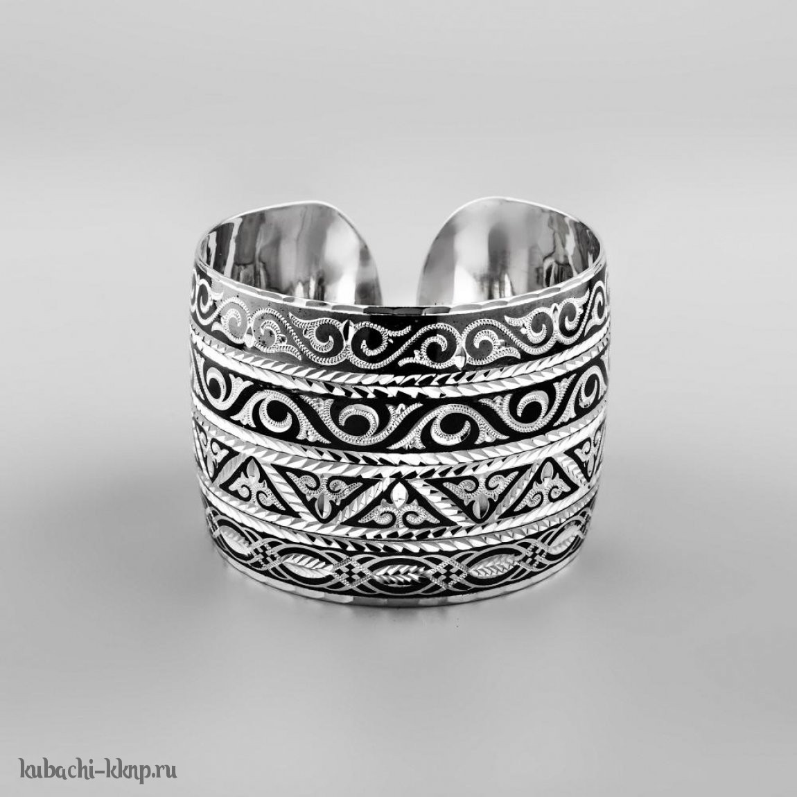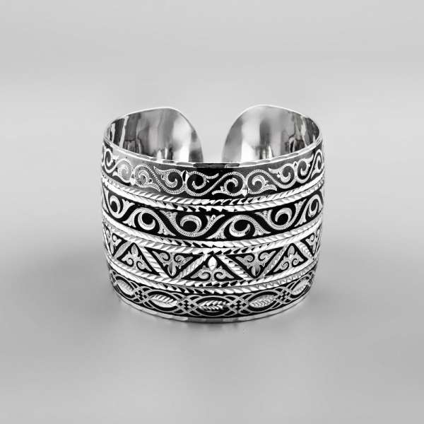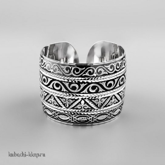 Серебряный широкий браслет Кубачи с орнаментом в это стиле, БР144
