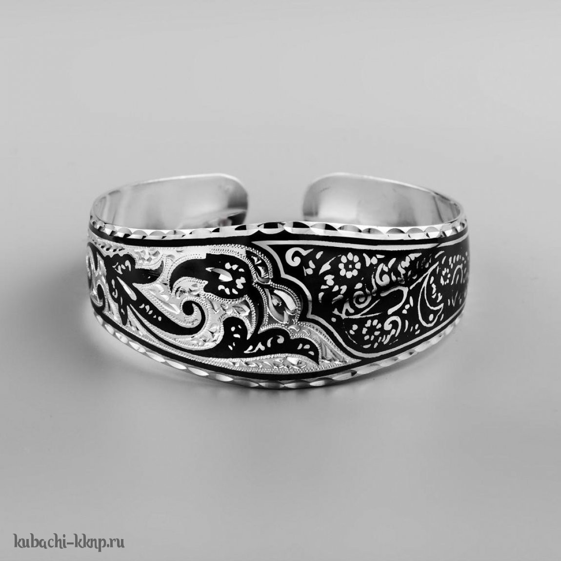 Серебряный браслет Кубачи «Черно-белый», БР02