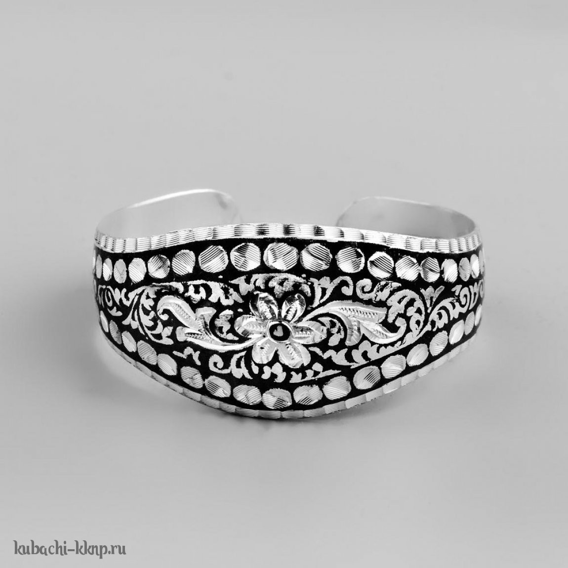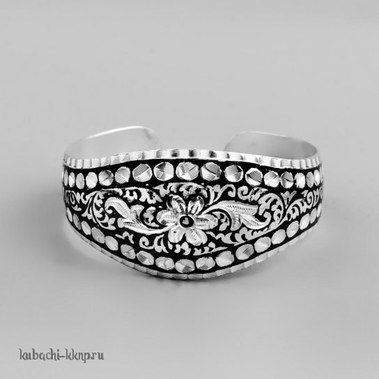 Серебряный браслет Кубачи с симетричным орнаментом и цветком - БР44