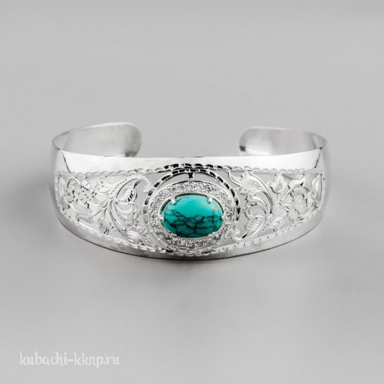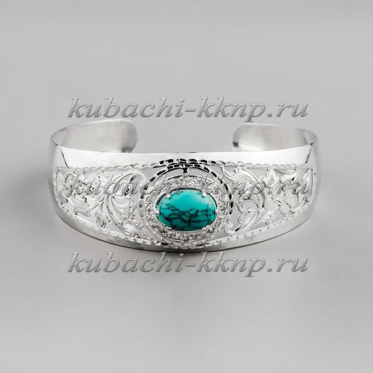 Серебряный женский браслет с искусственной бирюзой, БР93