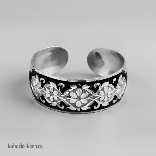 Серебряный браслет Кубачи с черненым цветком - БР151