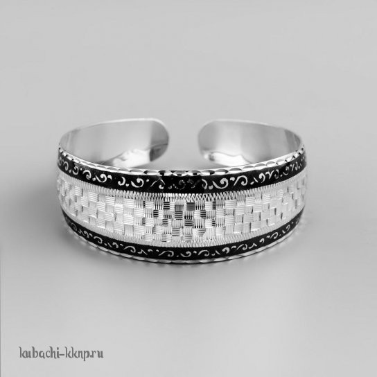 Тоненький серебряный браслет с черно-белым орнаментом - БР99