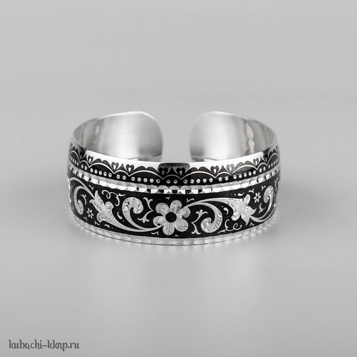 Серебряный браслет Кубачи с черненым орнаментом - БР122
