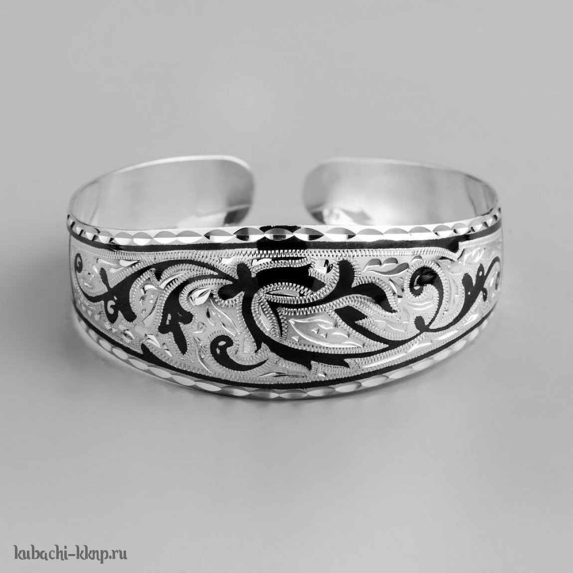 Разноширокий жесткий серебряный браслет Кубачи, БР117