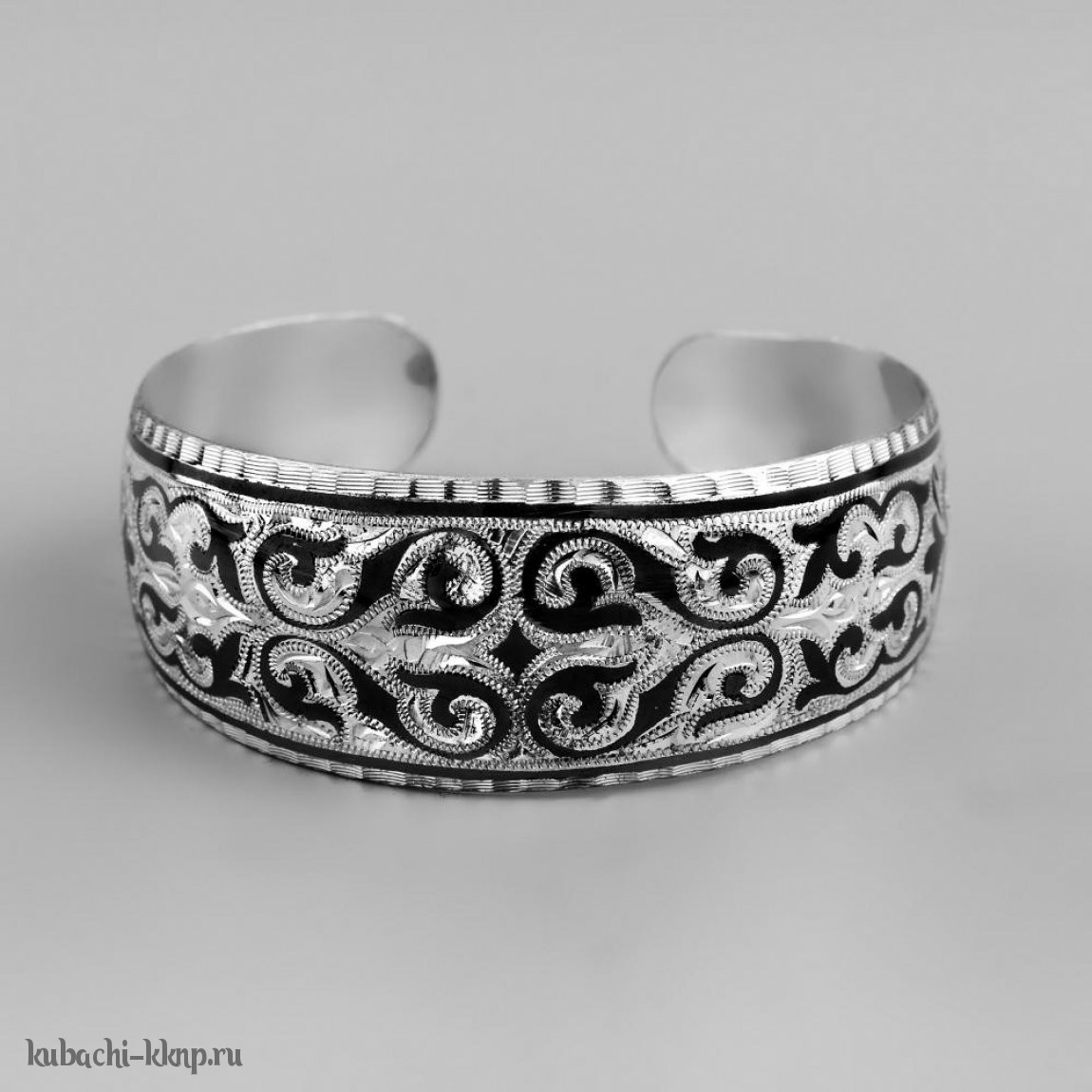 Разоширокий кубачинский браслет из серебра ручной работы - бр33