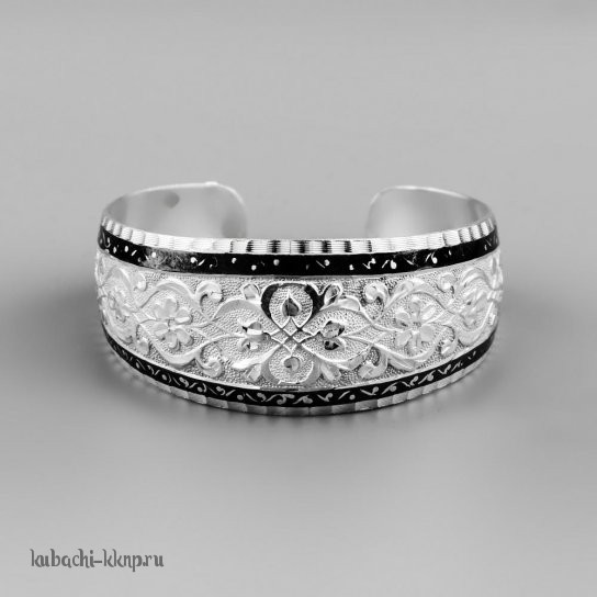 Серебряный браслет Кубачи с лазерной гравировкой и чернением - БР86