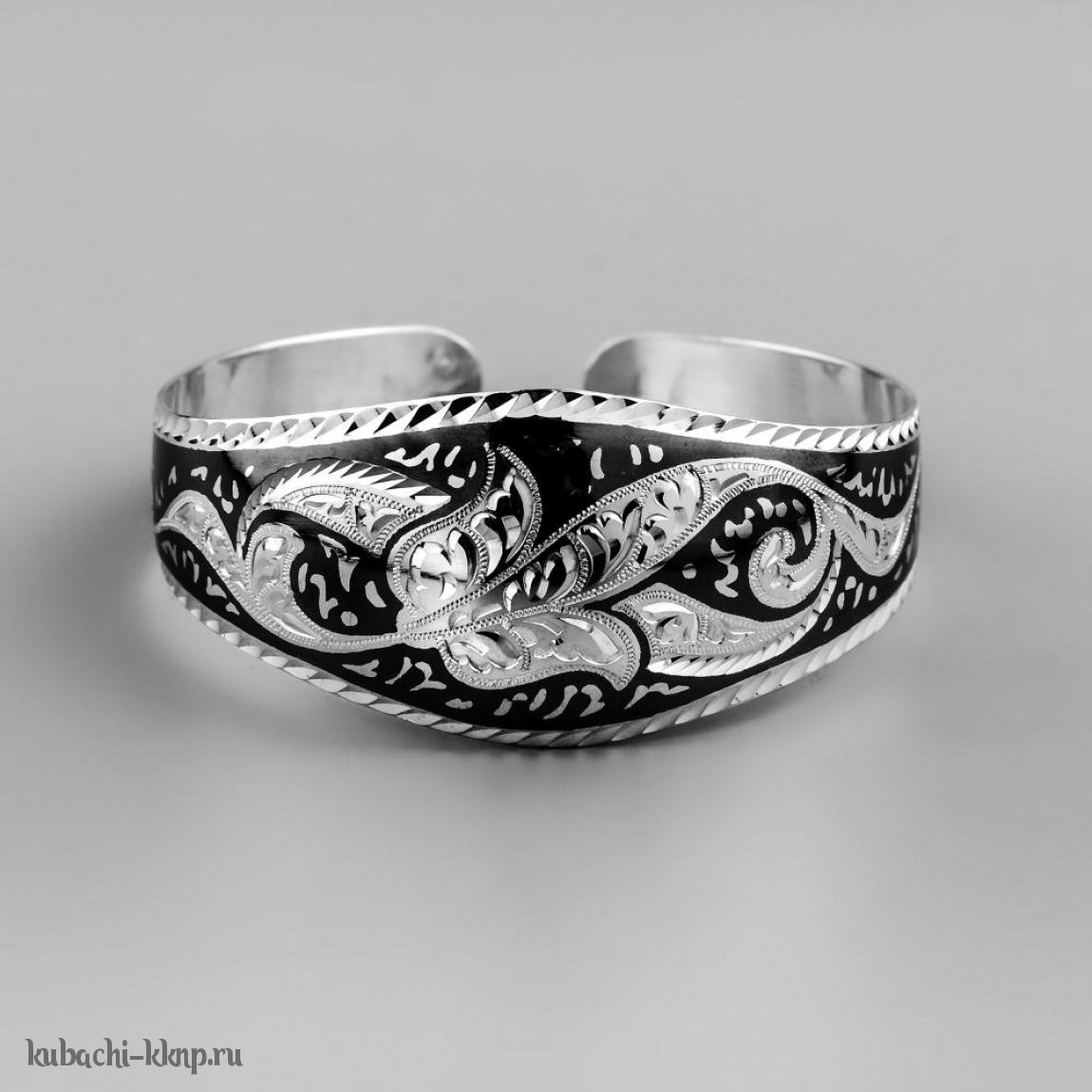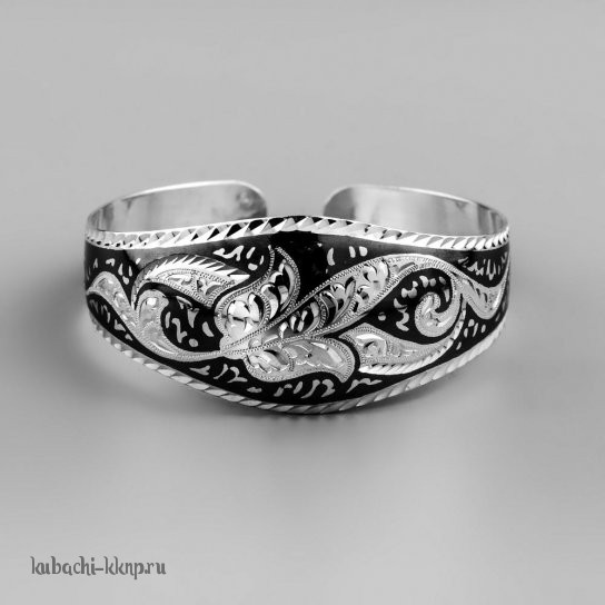 Разношрокий серебряный браслет Кубачи с цветочным чернением - БР53