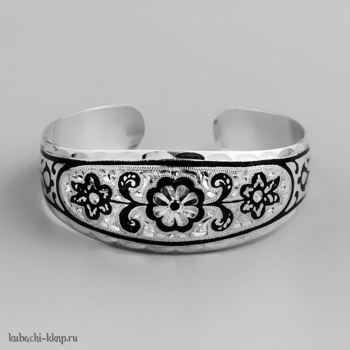 Серебряный браслет Кубачи с цветочным узором - БР56