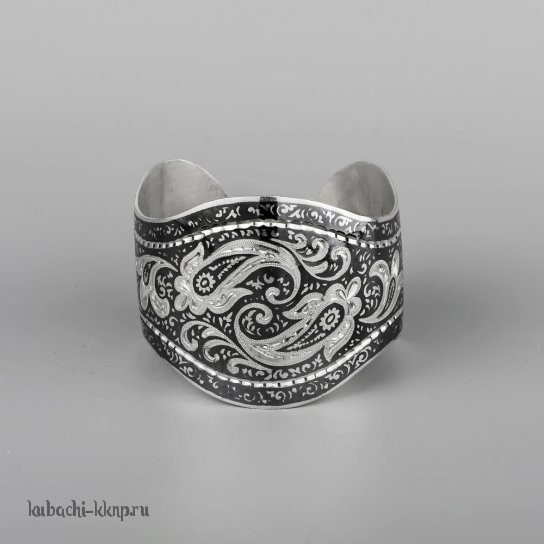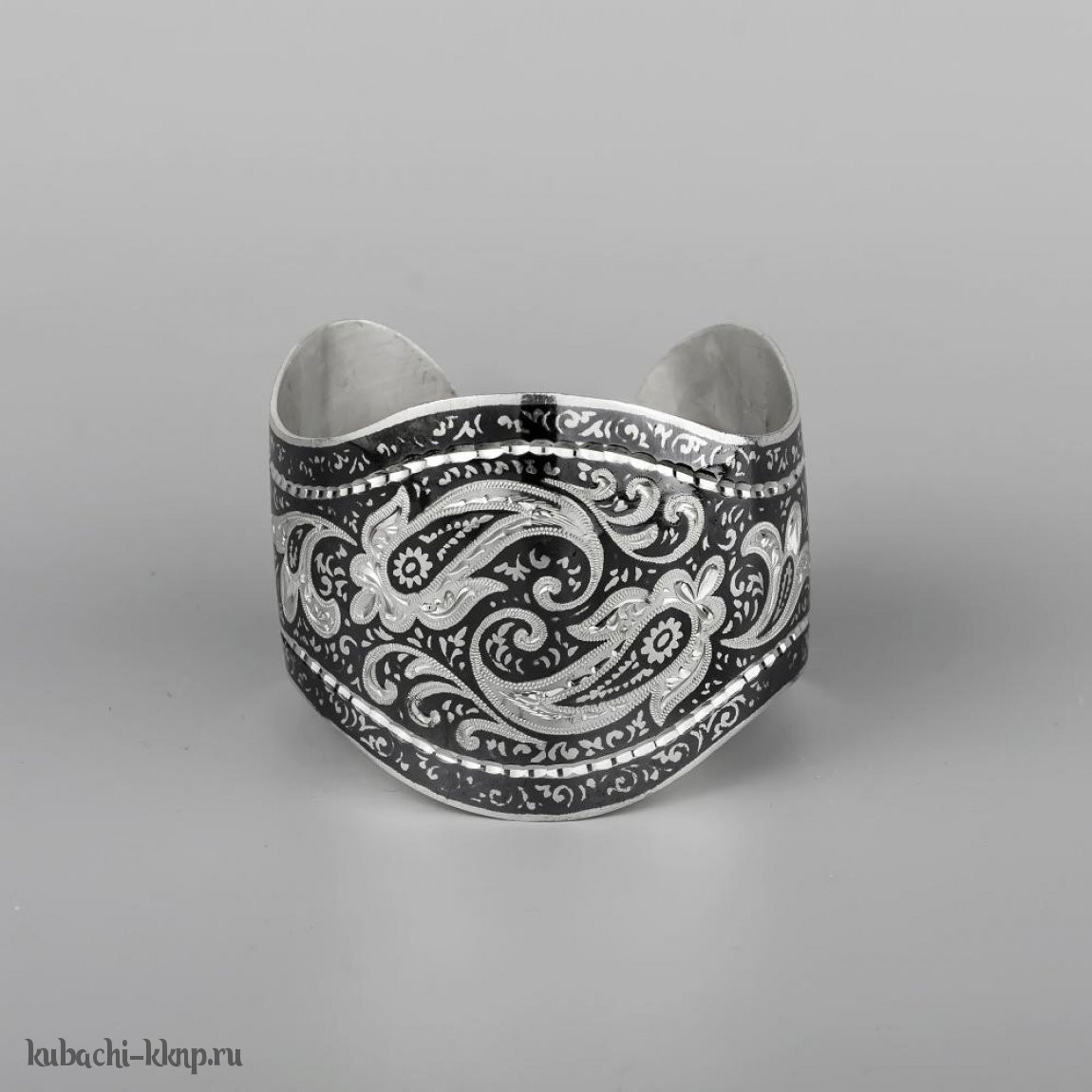 Серебряный браслет Кубачи с лазерной гравировкой и чернением - БР86