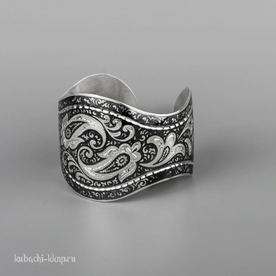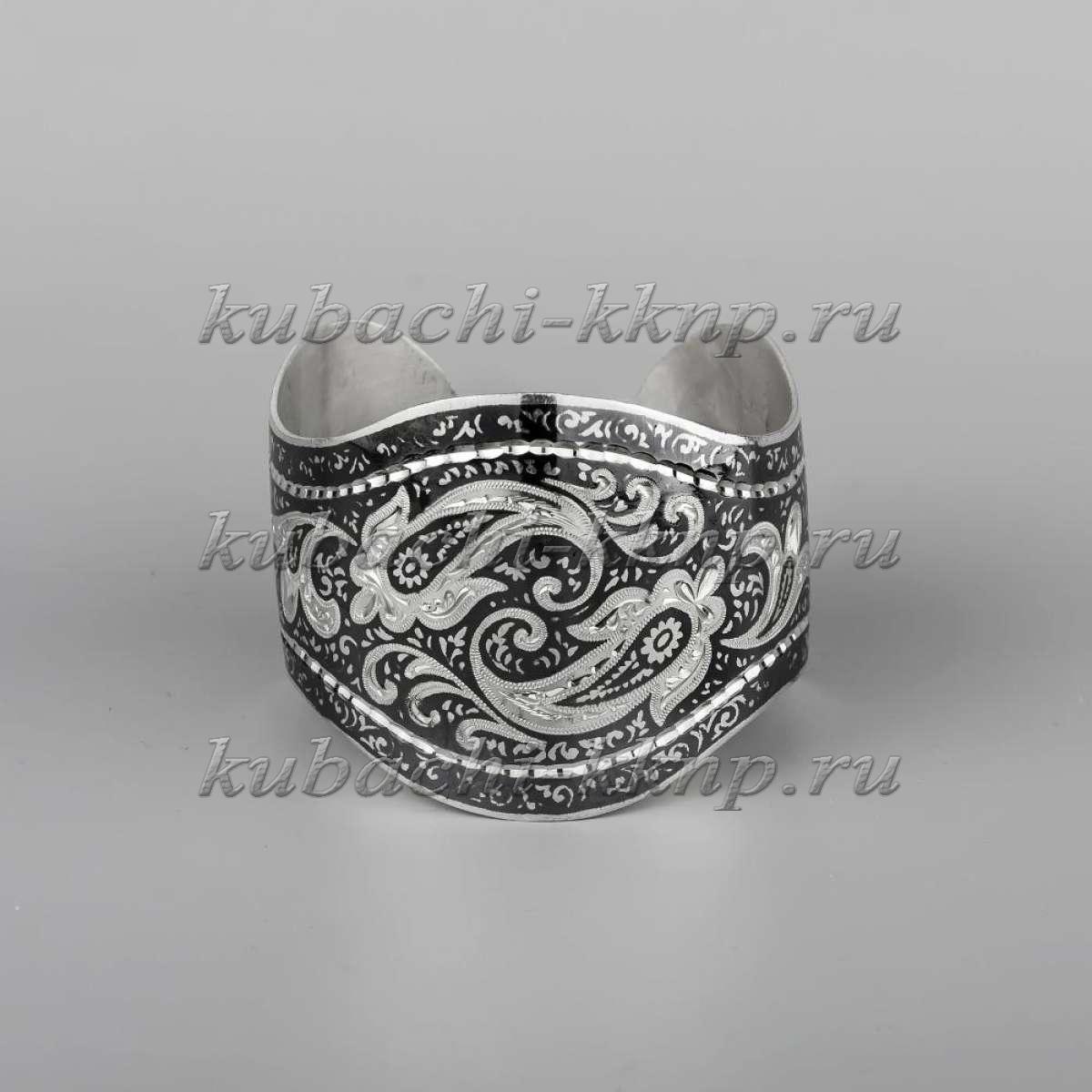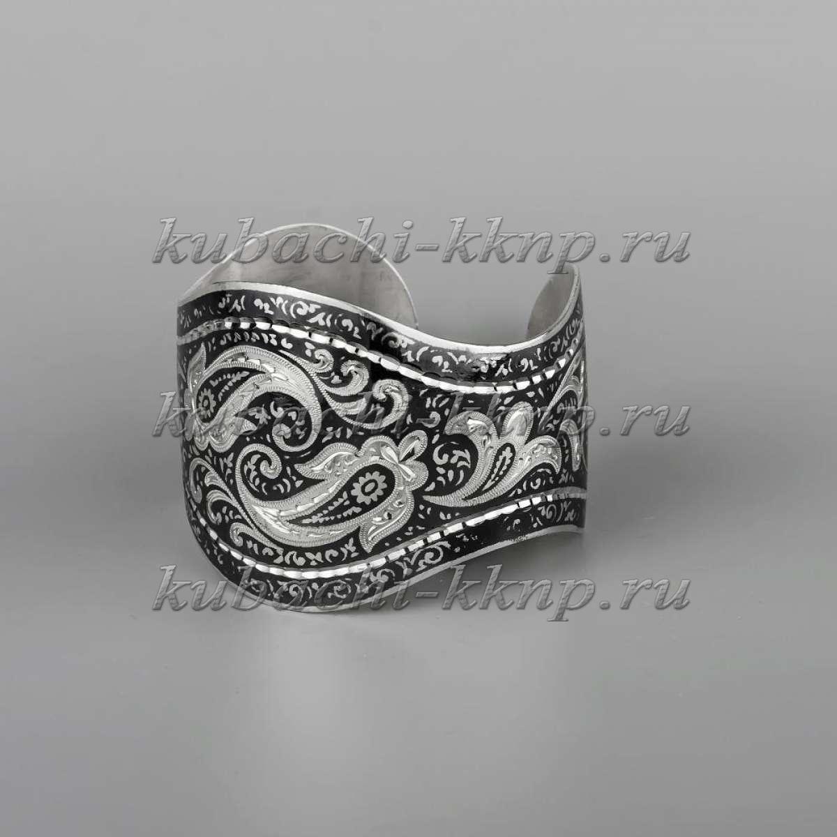 Разоширокий кубачинский браслет из серебра ручной работы, бр33