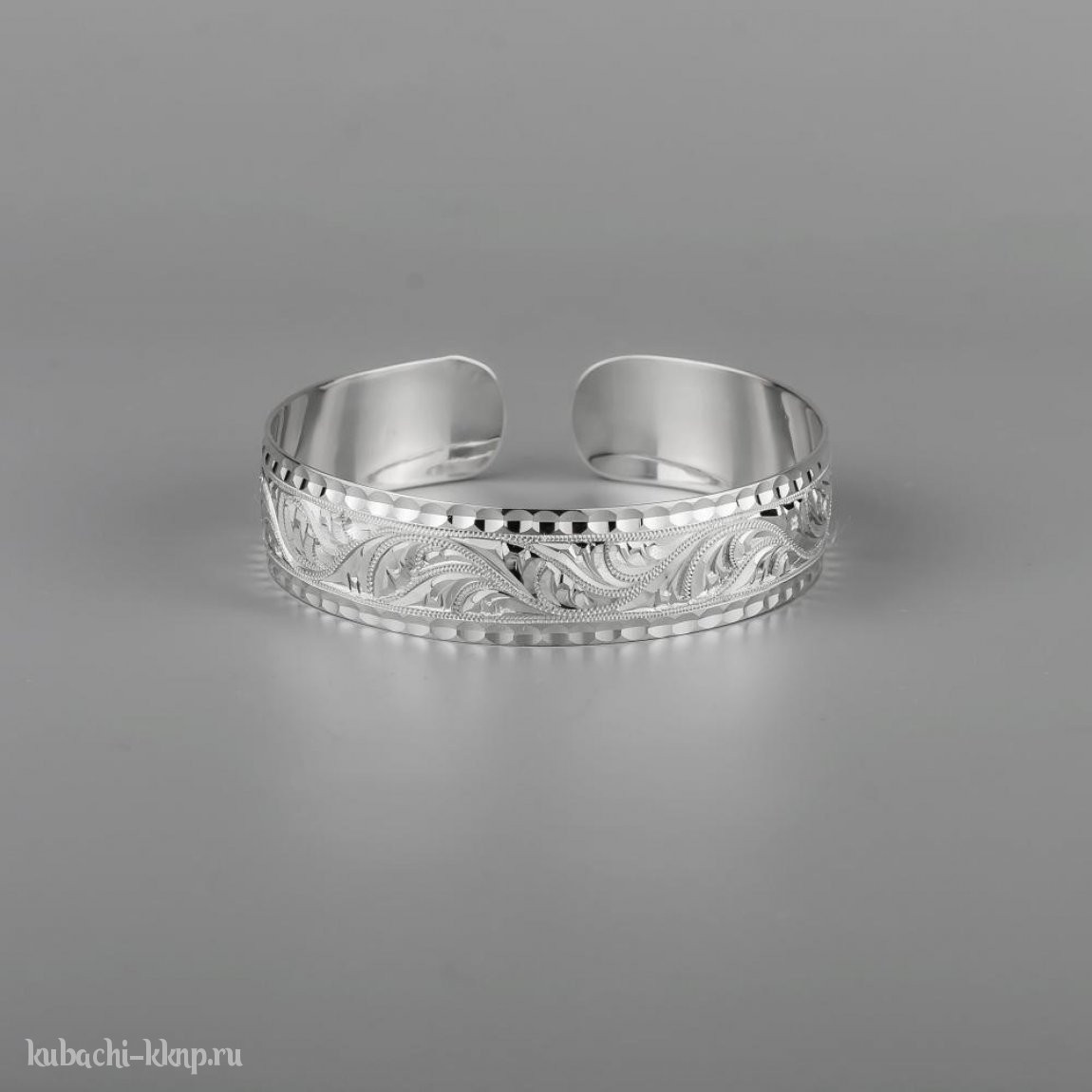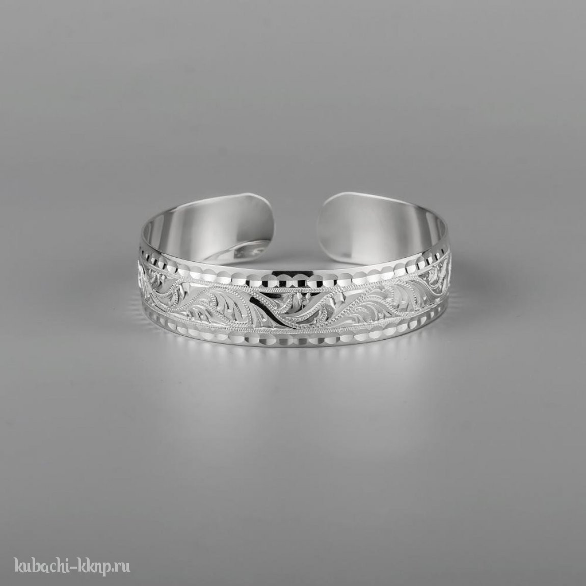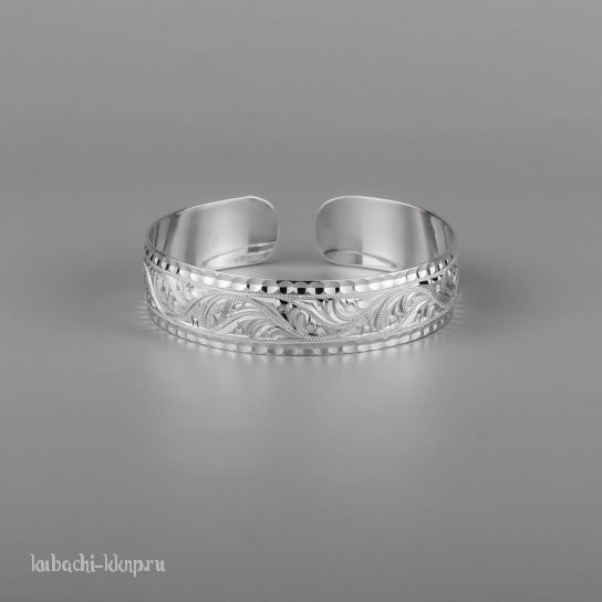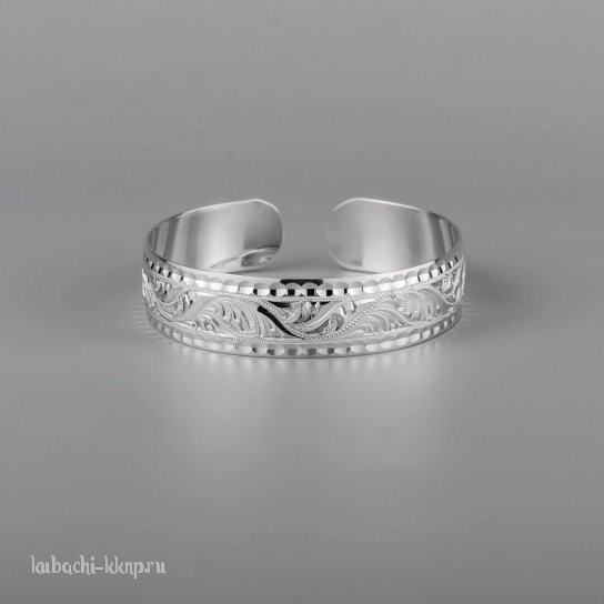Серебряный широкий браслет Кубачи с изящным орнаментом - БР184