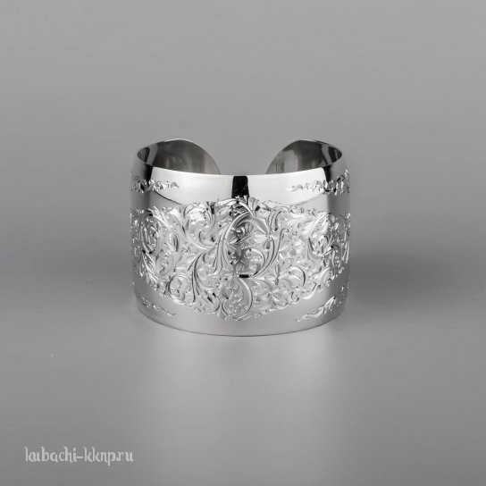 Серебряный кубачинский браслет без чернения с гравировкой, бр200