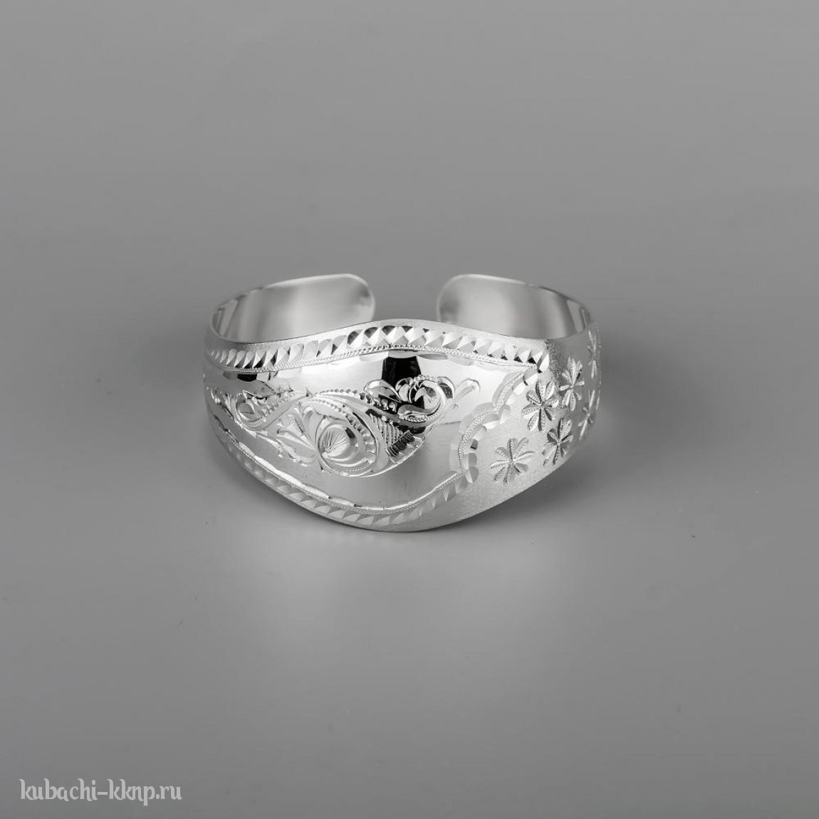 Серебряный широкий браслет Кубачи с орнаментом в это стиле - БР144