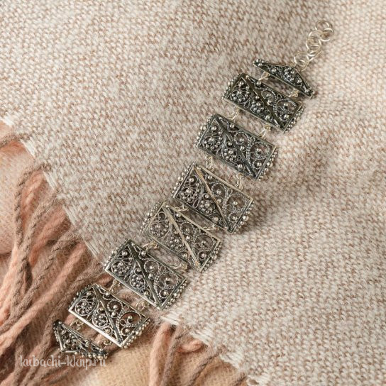 Кубачинский браслет из серебра с уникальным орнаментом - бр193
