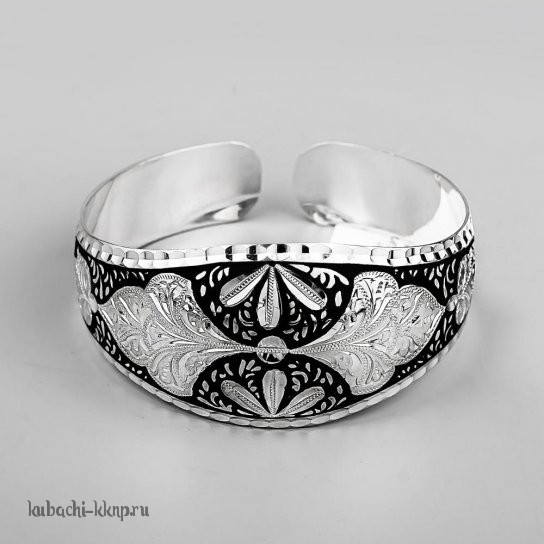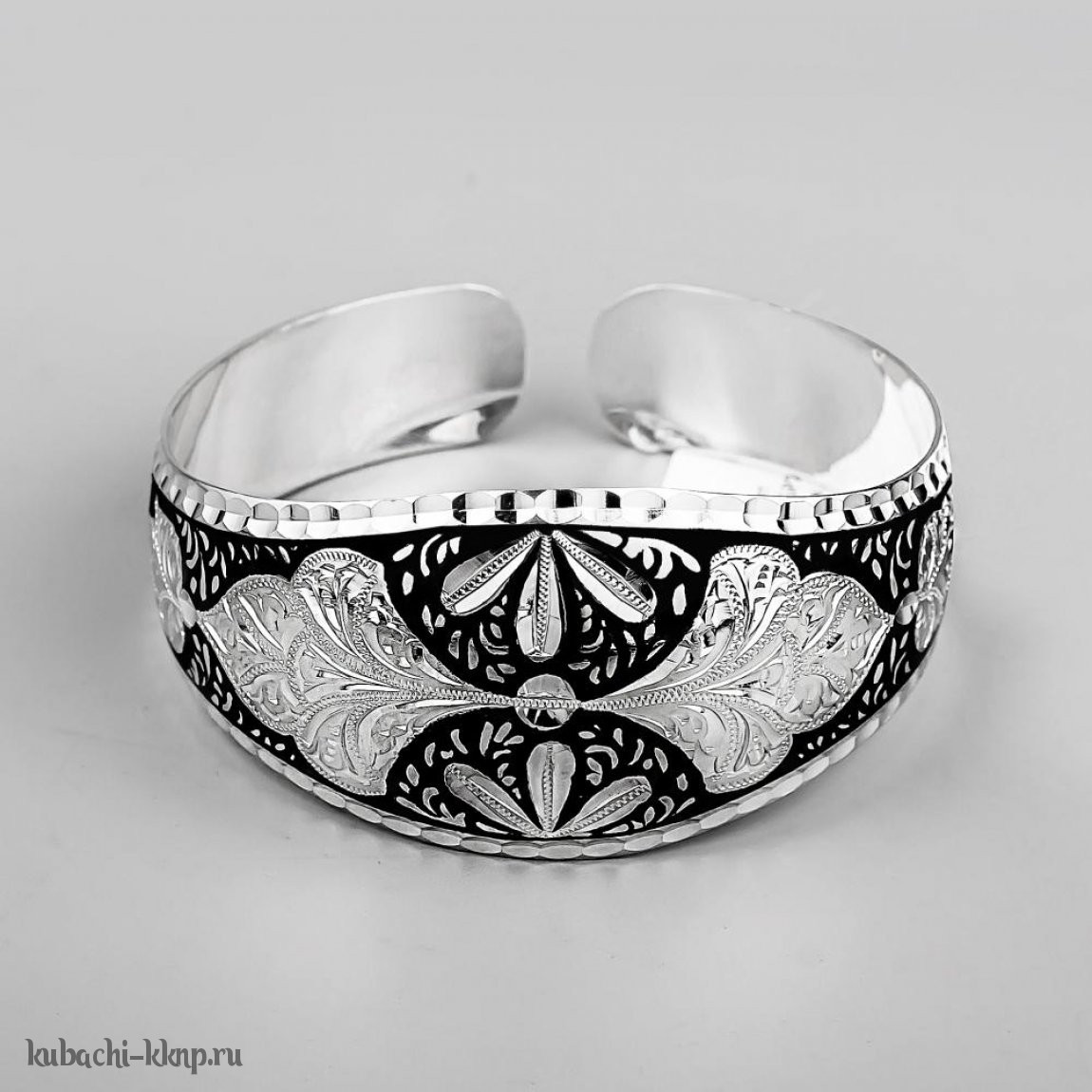 Серебряный браслет Кубачи  на женскую руку с орнаментом - БР03