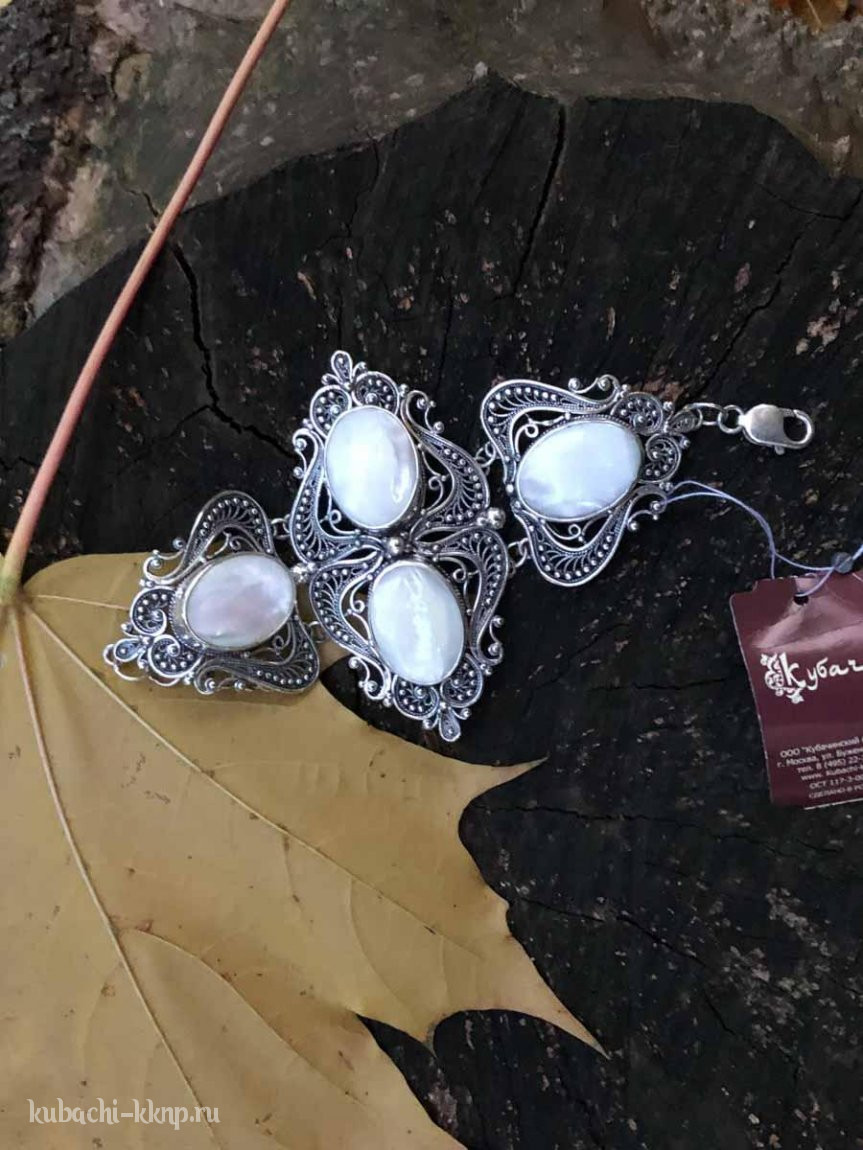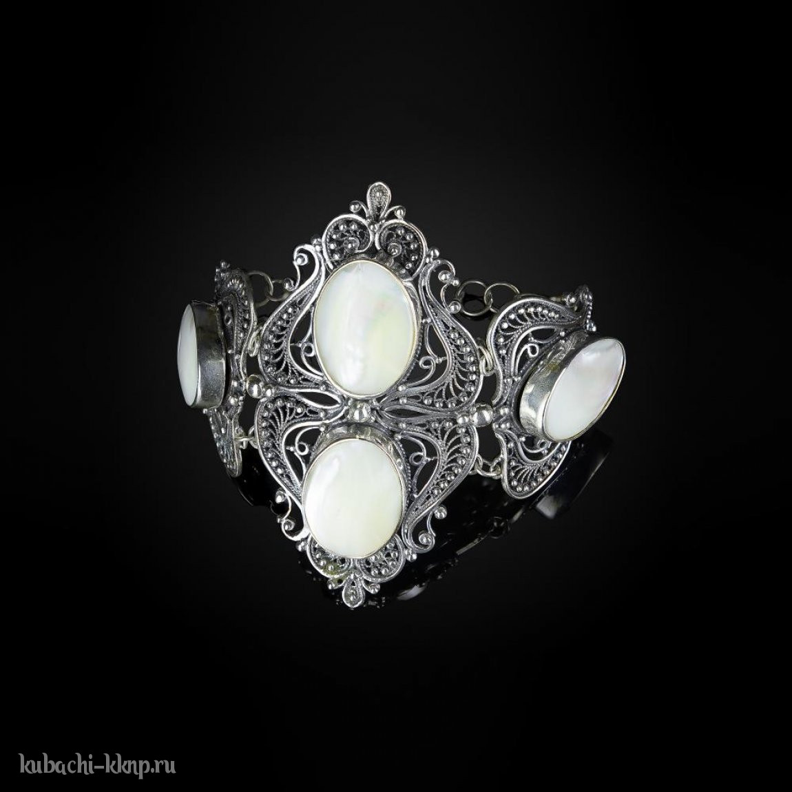 Массивный браслет из серебра 925 пробы перламутр, бр1008