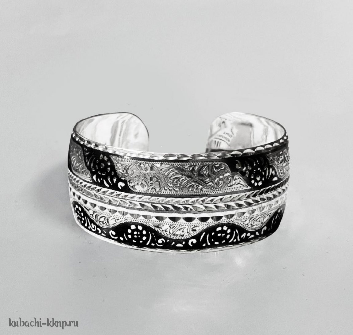 Серебряный браслет Кубачи  на женскую руку с орнаментом - БР03