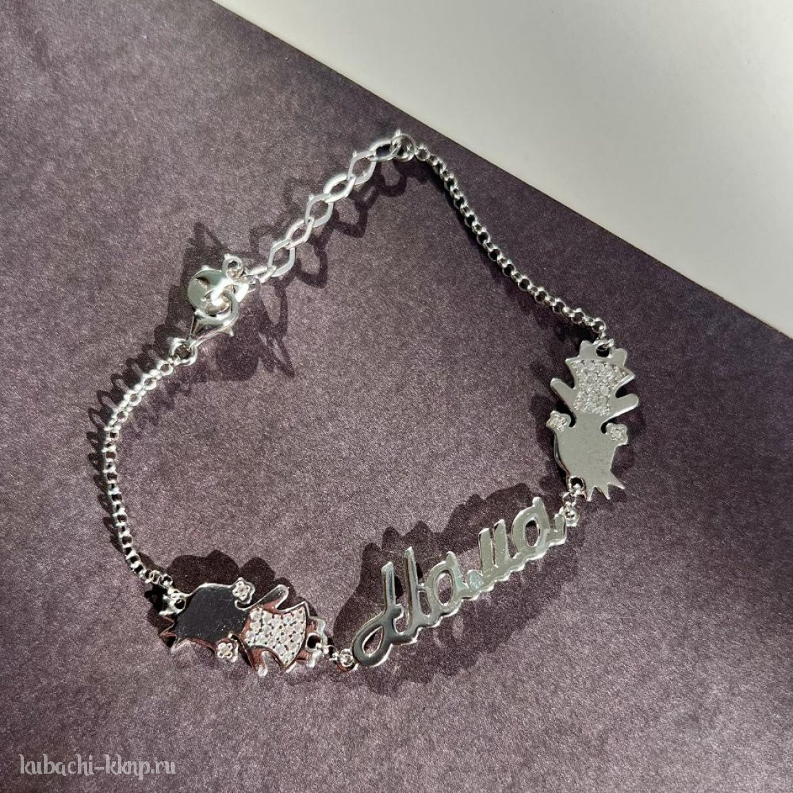 Жесткий серебряный браслет с нежным рисунком - БР190