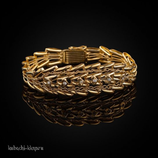 Кубачинский звеньевой браслет в позолоте с камнями плетения Елочка, Ag-бр23