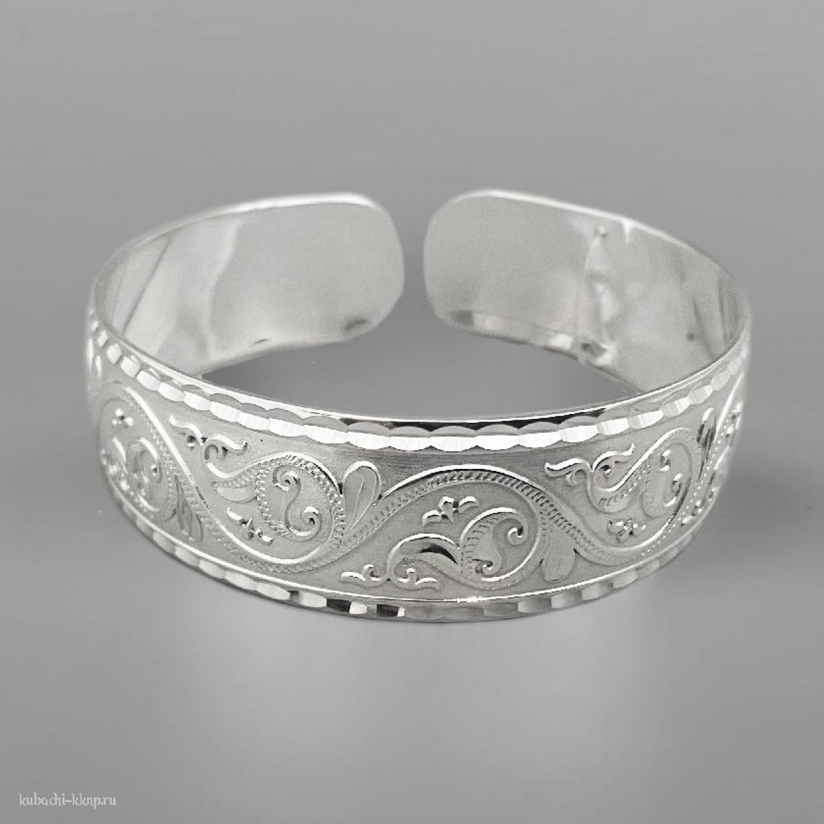 • Серебряный широкий браслет Кубачи с орнаментом в это стиле - БР144