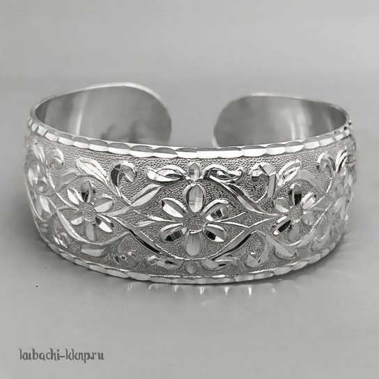 Жесткий серебряный браслет с кубачинским орнаментом - БР38