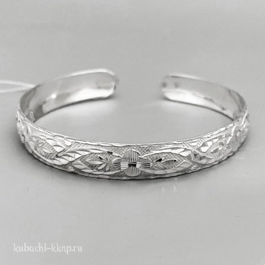 • Жесктий серебряный браслет с изящным узором - БР80
