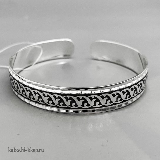 Серебряный браслет Кубачи с гравировкой и черненым узором - БР27