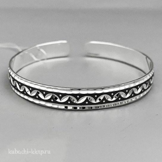 • Кубачинский браслет из серебра с черненой полосой по центруо - бр188