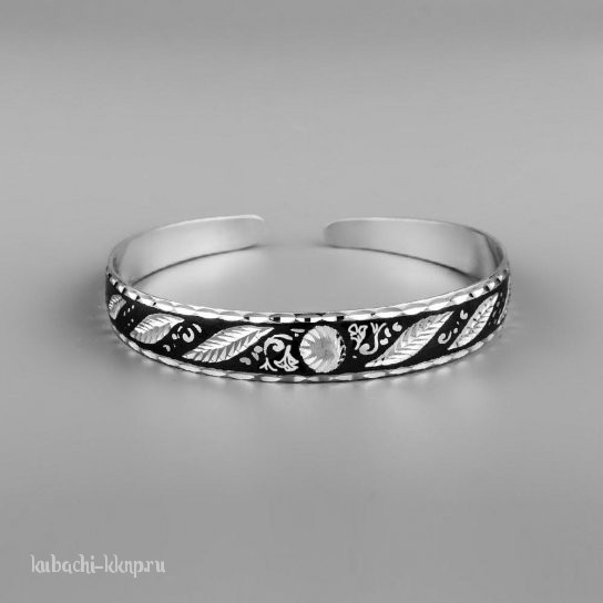 Жесткий серебряный браслет с нежным рисунком - БР190