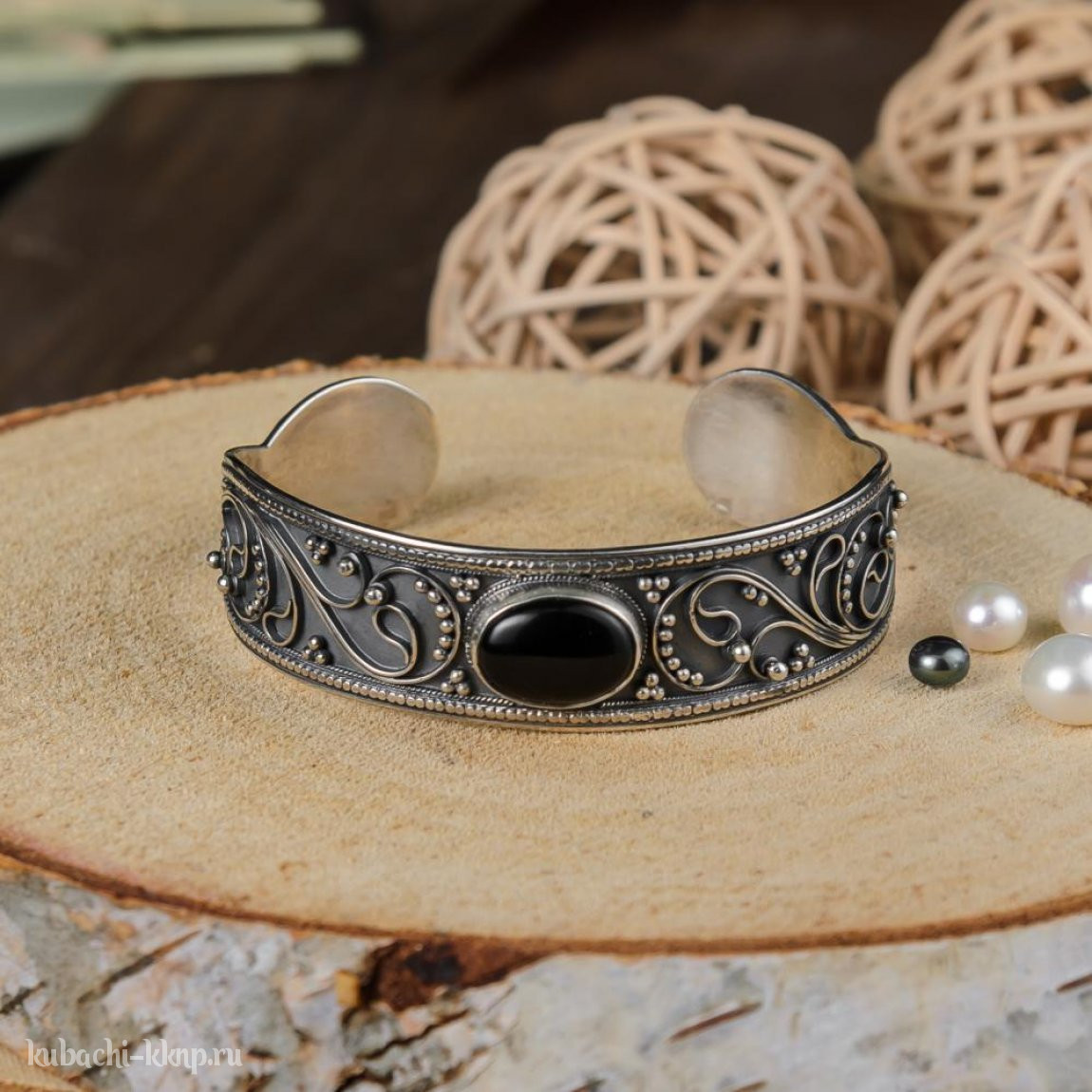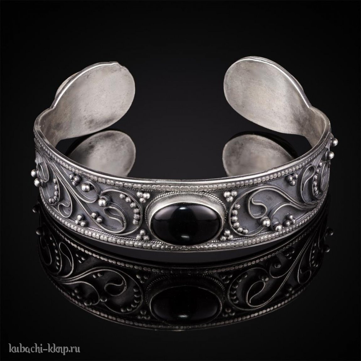 Кубачинский браслет из серебра с чернением - бр85