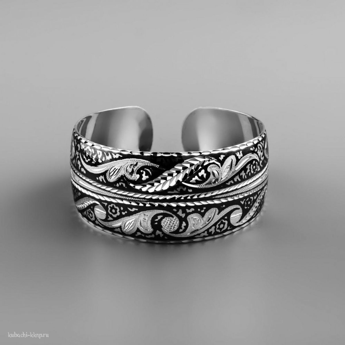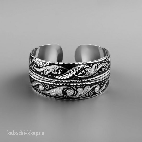 • Серебряный широкий браслет кубачи